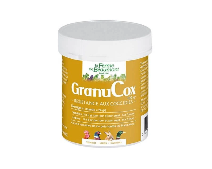 Mis au point et utilisé par les éleveurs de la Ferme de Beaumont, le GranuCox maintient vos animaux en pleine forme et en bonne santé.