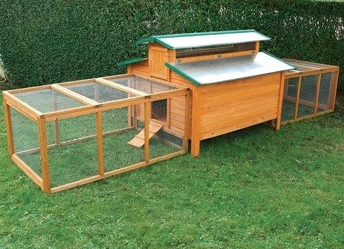 Grand, profond, entièrement équipé, ce poulailler vos étonnera par ses dimensions. Un côté est entièrement consacré aux pondoirs tandis que l’autre est équipé de perchoirs en espalier. Idéal pour les poules pondeuses, il est bien ventilé et équipé d’une sortie sur chaque façade avec trappe coulissante. Il peut être équipé de 1 ou 2 parcours universels. En bois teinté, il a une toiture en métal galvanisé. Livré en kit, très facile à monter.