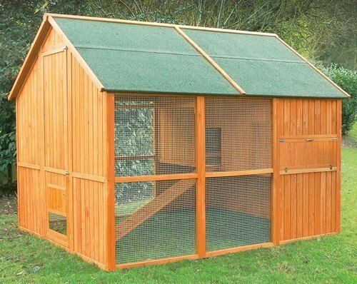 Pour les poules : Abri spacieux équipé d’un pondoir et de perchoirs, vaste volière protégée des courants d’air, accès au jardin par la trappe de sortie, aération réglable afin de garantir à vos poules tout le confort et l’espace dont elles ont besoin.