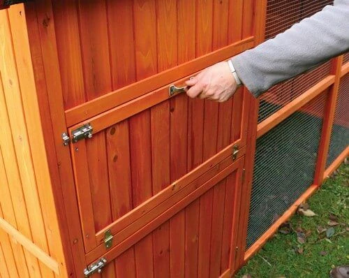 Optez pour une trappe ou une porte solide et hermétique. A défaut il faudra la renforcer avec un système de fermeture pour assurer la sécurité de vos poules. Les prédateurs sont rusés et très motivés, méfiez-vous !