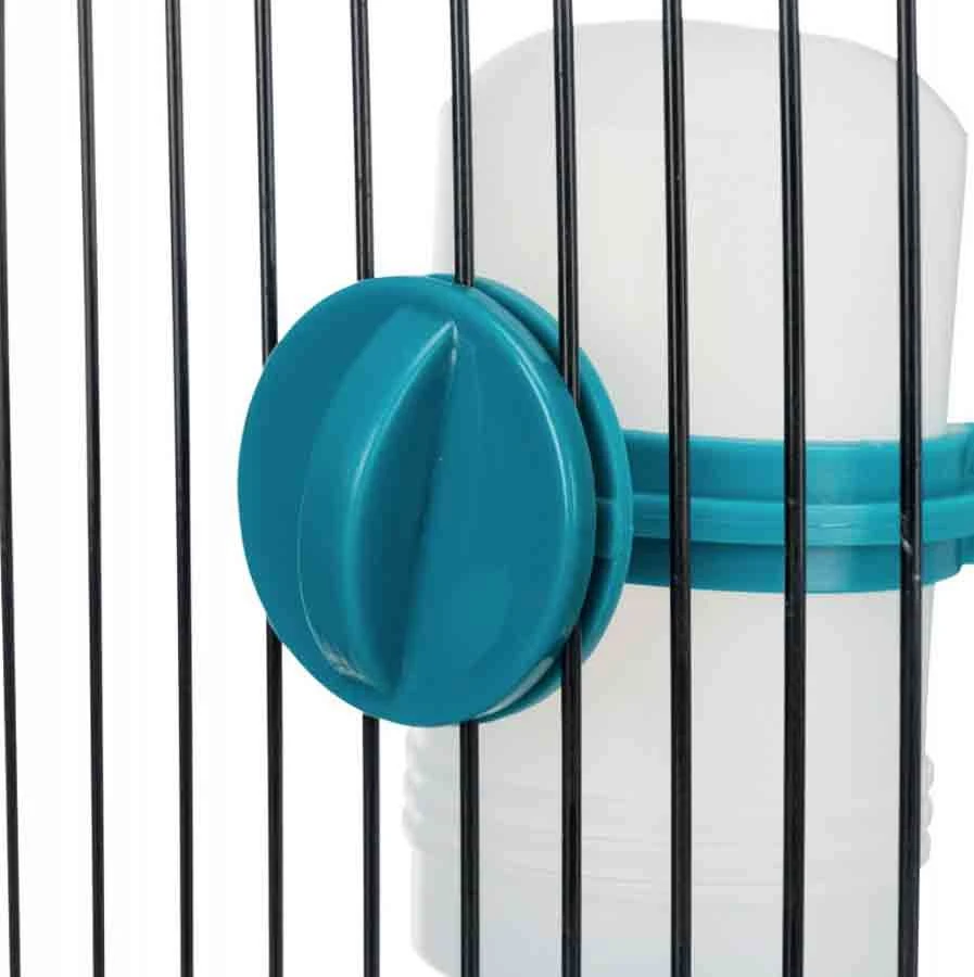 - se fixe aux barreaux de la cage et au mur