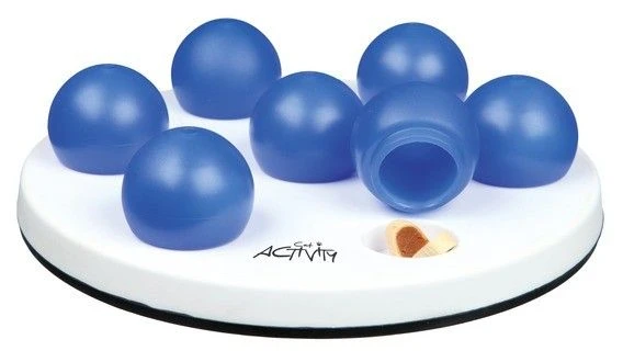 Votre chat doit déplacer les balles avec sa patte afin d’obtenir les friandises qui sont cachées dessous. Vous pouvez augmenter le niveau de difficultés en plaçant des friandises sous seulement quelques unes des balles. Les balles possèdent un petit orifice sur le dessus permettant à votre chat de sentir et de voir la friandise qui se trouve dessous, et ainsi de l’inciter à s’engager dans le jeu.