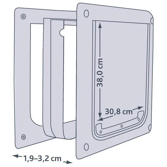 La chatière manuelle 2 positions pour grands chiens s’adapte aux portes et murs afin de permettre à votre chien de sortir et entrer de la maison.